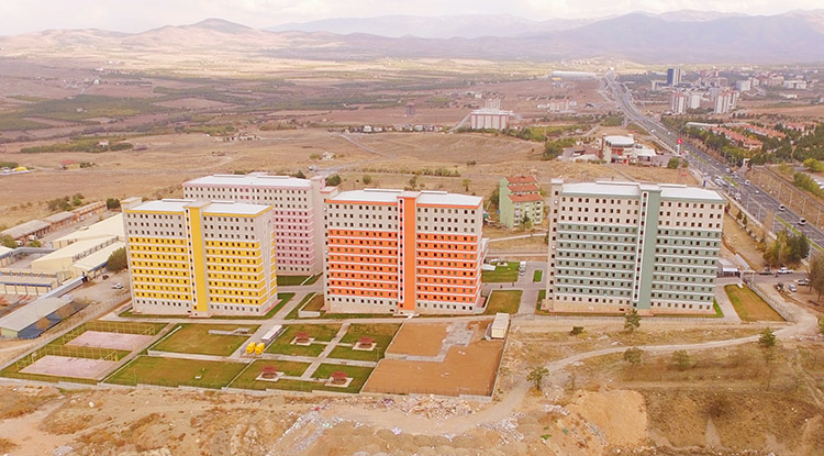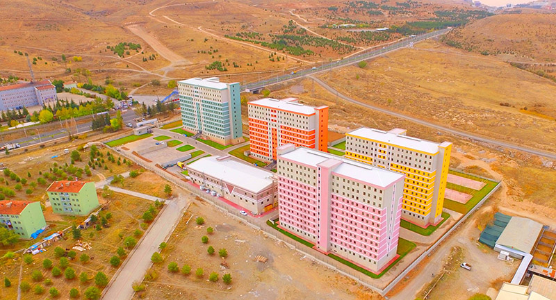 3512 öğrenci kapasiteli yurt 32.682 m2 alana sahip arsaya 5 blok halinde 60.000 m2 kapalı alana sahip olarak inşa edilmiştir.